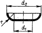 | 10 | Четверть сферического кольца (вогнутая) | ![]() | (π /2) (π dr + 2,28r2 ) или (π /4)(2π d1 r - 8r2) |
