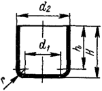 r - радиусы закругления в углах и у дна, принимаемые одинаковыми.