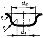 , где rД1 и rД2 - радиусы закруглений у дна на первой и второй операциях.