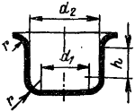 Так, например, для квадратных коробок, принимая радиусы закруглений в углах и у дна одинаковыми, диаметр заготовки находим по формуле: